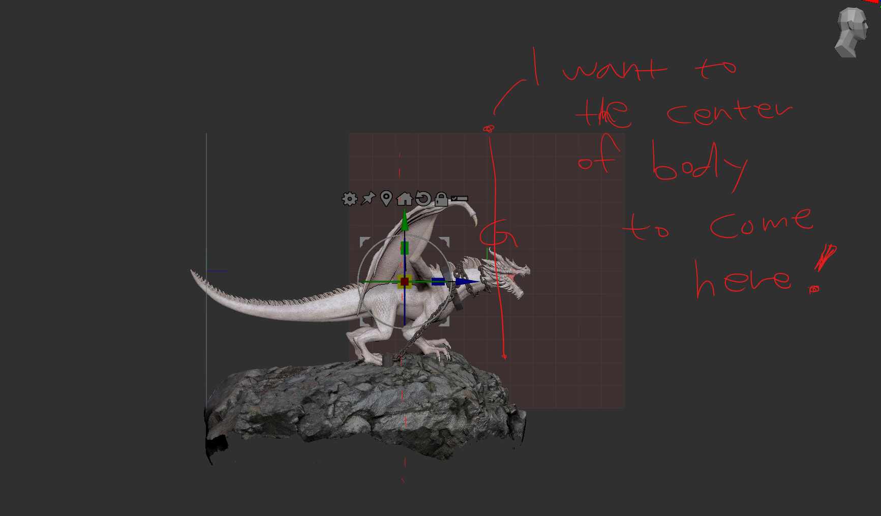 Then use the Gizmo to move all subtools at once so that the Gizmo center lies on top of the world center shown on the floor. Change to the various orthographic views to get the Gizmo aligned to the world properly.