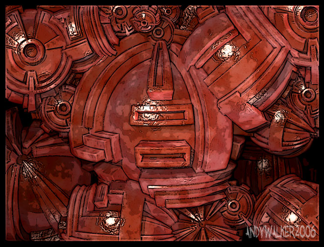 Using standard greeble shapes and a few of my own on the alpha