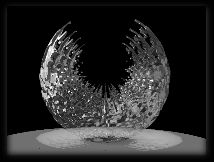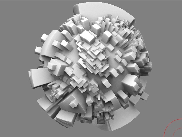 This is another application of the technique demonstrated by Lemonnado. I inflated a few times up to a hundred, then I deflated a couple of times, then I inversed the masking and inflated again. All of this happened on a 3D terrain converted to PM.